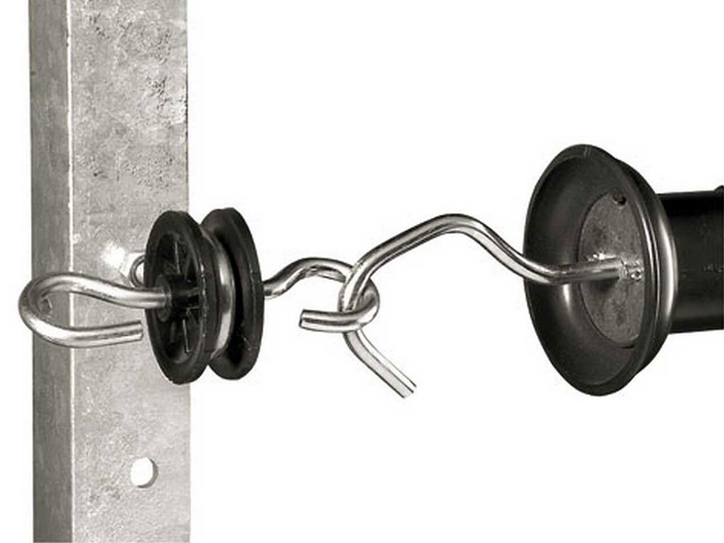Bránový izolátor pro elektrický ohradník, pro snadné upevnění brány a vodiče, metrický závit M6x35 mm. Objevte perfektní způsob pro vytvoření brány u Vašeho elektrického ohradníku! Díky tomuto bránovému izolátoru snadno připevníte bránu a vedlejší vodič, pro vytvoření snadného přístupu do ohradníku. Izolázor je tvořen dvěma háčky. Díky závitu M6 o délce 35 mm a 2 maticím (je součástí balení) je uchycení pevné a bezpečné.