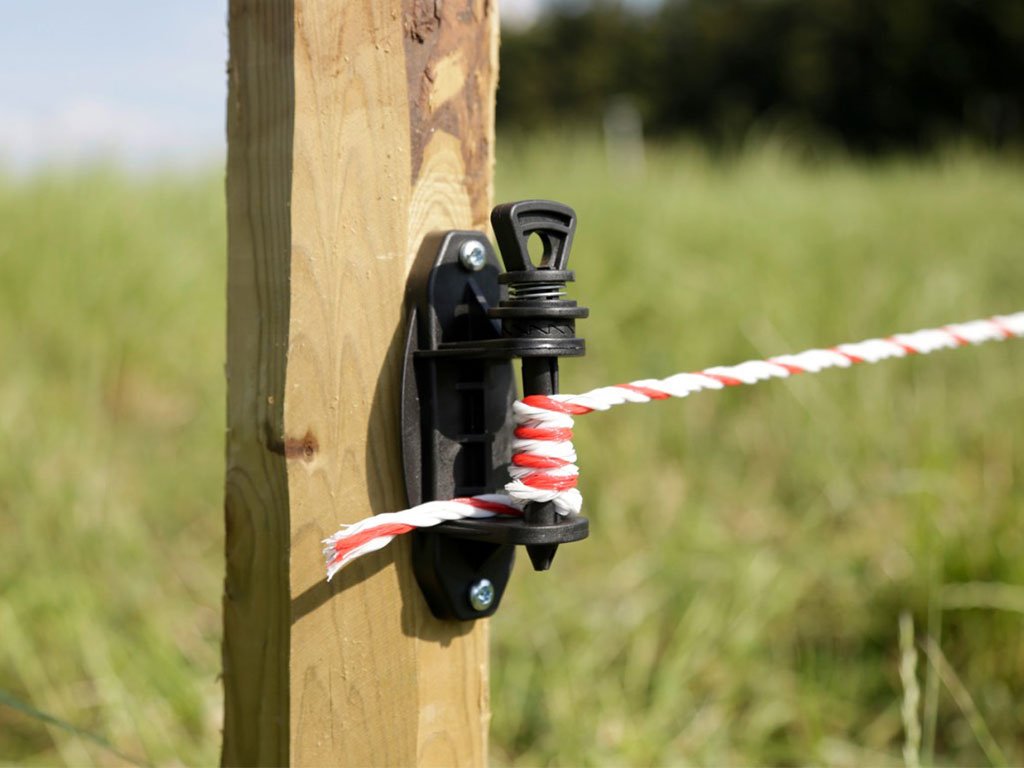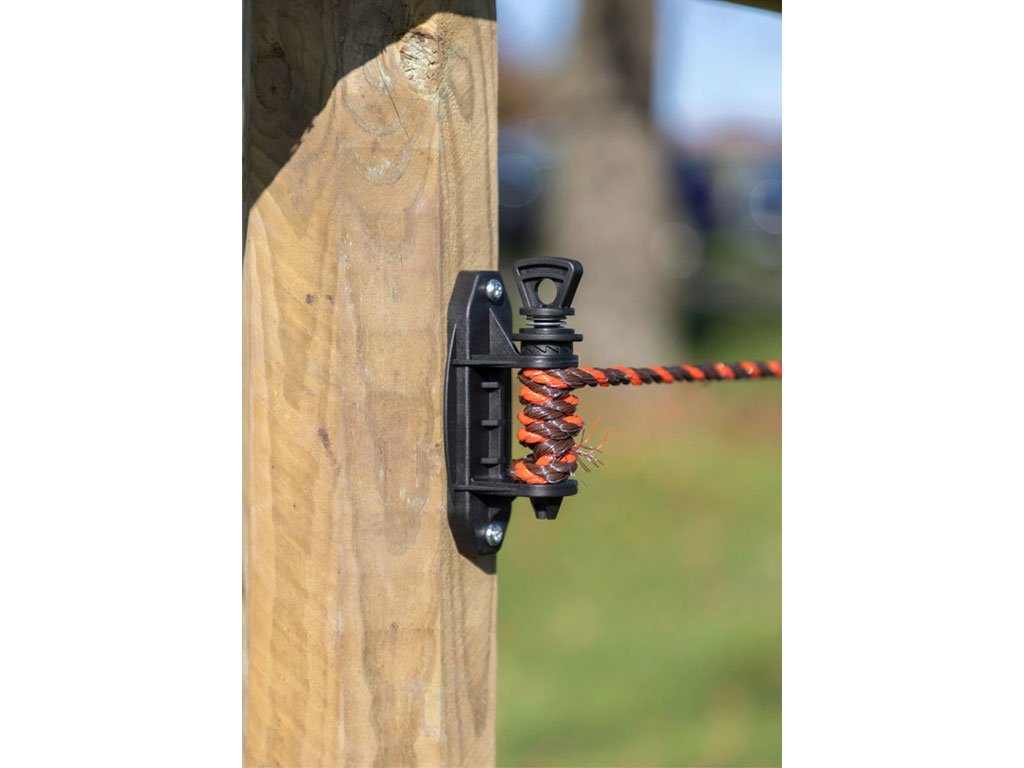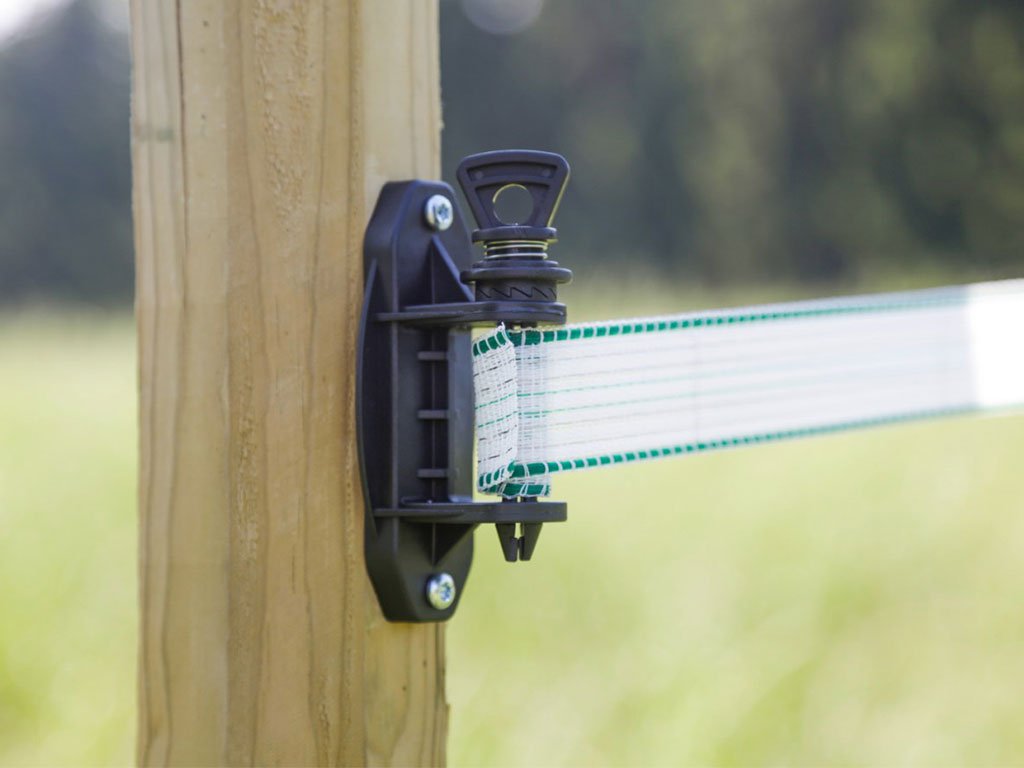 Napínací izolátor pro elektrický ohradník, určený pro ohradníkové pásky, vynikající izolační vlastnosti, inovativní metoda montáže. Objevte ideálního pomocníka pro vytvoření elektrického ohradníku pro Váš chov! Tento napínací izolátor zajišťuje snadné, rychlé a bezpečné ruční napínání plotových pásků nebo i lanek bez nutnosti nářadí díky praktické ráčnové funkci a zajišťovacímu mechanismu. Umožňuje jednoduché uvolnění pásky či lanka a díky tomu snadnou úpravu napnutí kdykoliv během používání. Montáž je velmi flexibilní a lze přidat do stávajících plotových systémů a upevnit na dřevěné sloupky pomocí šroubů nebo hřebíků, což zaručuje stabilní a pevné uchycení. Vysoce odolný polyamid vyztužený skleněnými vlákny zajišťuje mimořádnou pevnost, dlouhou životnost a odolnost vůči povětrnostním vlivům i UV záření. Hodí se pro pásky do 40 mm a ohradníková lanka do Ø 8 mm, čímž poskytuje univerzální řešení pro elektrické ohradníky.
