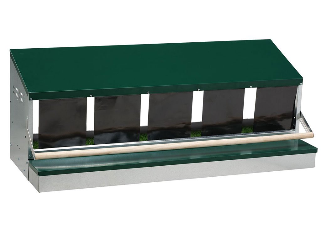 Snáškové hnízdo pro slepice s bidlem a sběrným košíkem, pětimístné, až pro 25 nosnic, z odolného kovu a plastu, snadná údržba. Objevte perfektního pomocníka pro každého chovatele drůbeže. Snáškové hnízdo zajišťuje čistý a pohodlný sběr vajec díky svému promyšlenému designu a funkci vysouvání. Vejce jsou chráněna před poškozením a snadno je odeberete bez znečištění. Součástí hnízda je integrované bidýlko, které poskytuje slepicím pohodlné místo k odpočinku. Hnízdo je určeno na zem v kurníku nebo k montáži na stěnu a je ideální i pro začínající chovatele díky jednoduché instalaci. Je vyrobeno z kvalitního plastu a kovu, což zajišťuje dobrou odolnost vůči vlhkosti a nečistotám. Údržba i dezinfekce jsou rychlé a nenáročné. Rozměry hnízda: D 51,5 cm x Š 132,4 cm x V 51 cm.