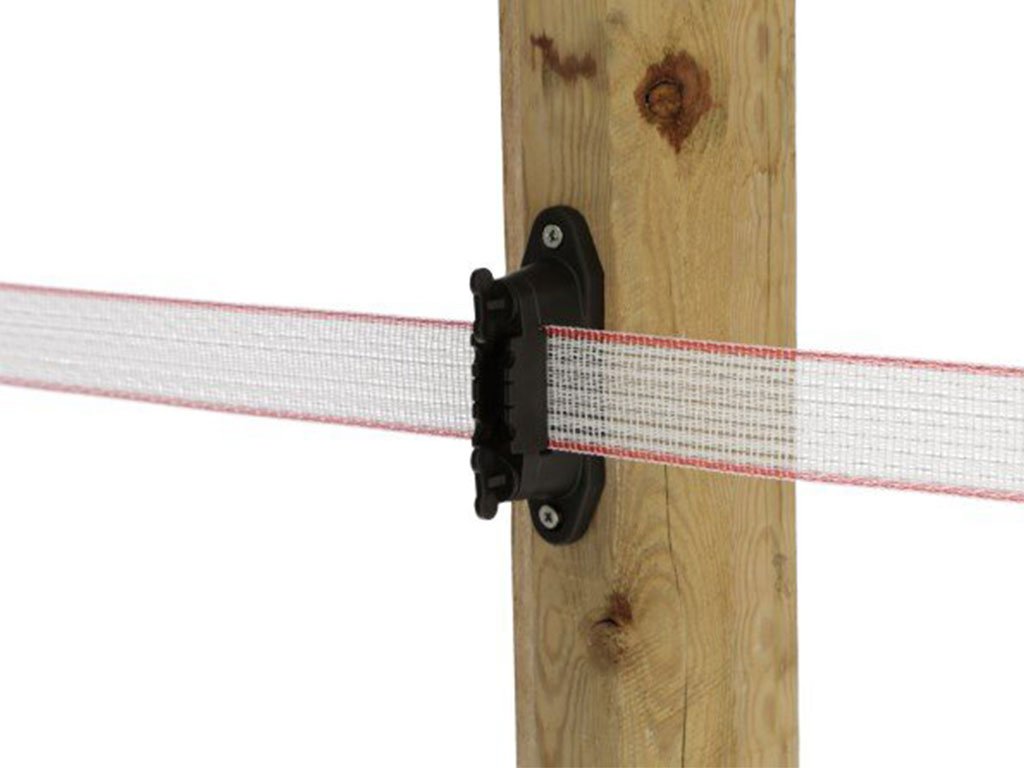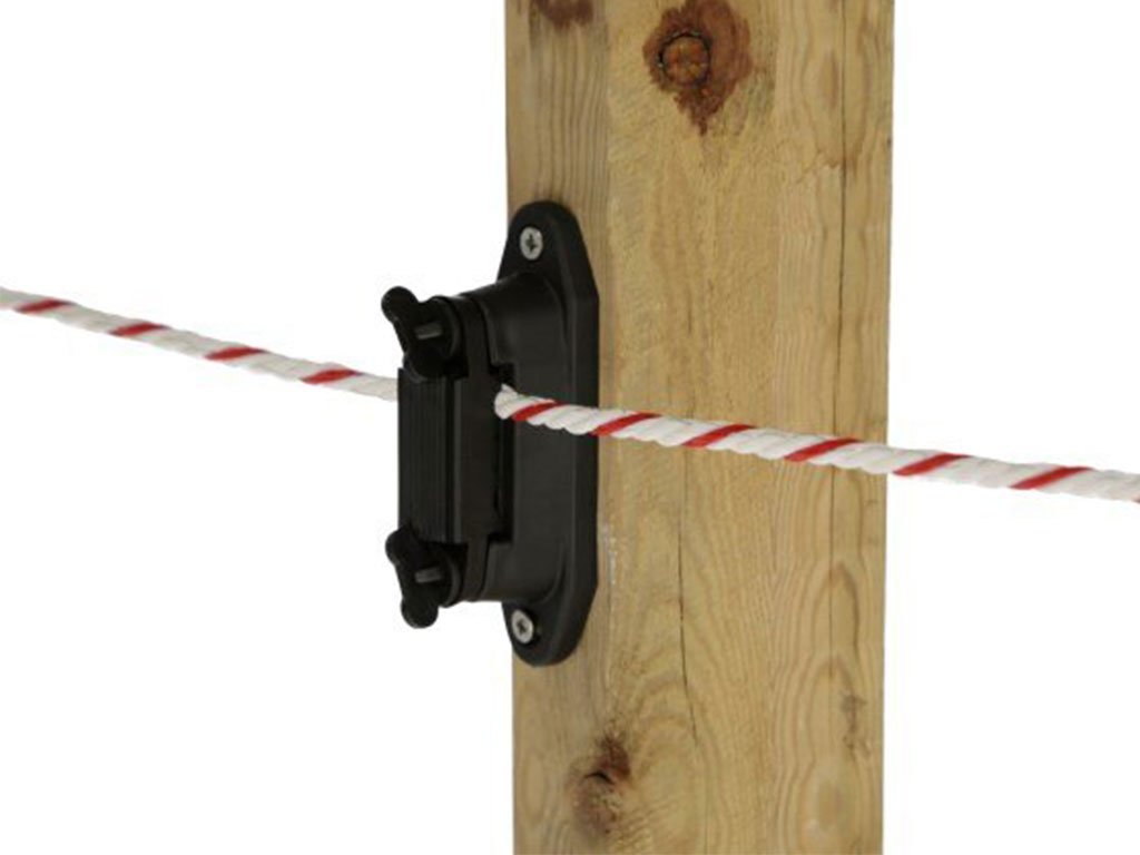 Rohový izolátor pro elektrický ohradník, určený pro ohradníkové lanko či pásku, připevnění na 2 vruty. Objevte ideálního pomocníka pro vytvoření elektrického ohradníku pro Váš chov! Izolátor umožňuje rychlou, bezpečnou a spolehlivou instalaci elektrického ohradníku. Je určen především pro pásky do šířky 40 mm, ale lze jej použít také pro lanka do Ø 6 mm. Je vhodný jako počáteční izolátor a lze jej využít jako bránový, rohový i běžný typ. Vnitřní plocha z grafitové gumy propojuje vodiče a podporuje vodivost. Připevnění na 2 vruty zajišťuje vysokou pevnost, odolnost a dlouhou životnost i při náročném venkovním použití.