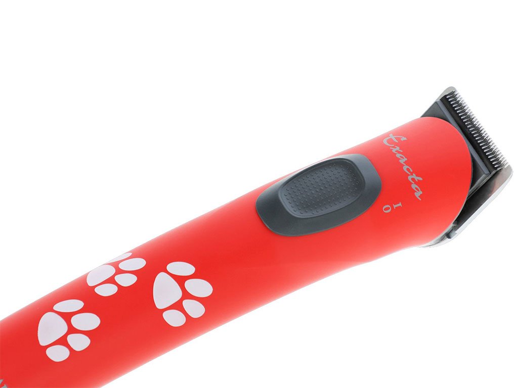 CZ popis | Akumulátorový stříhací strojek na psy, červená barva, rozměry 14x3x3,6cm |
